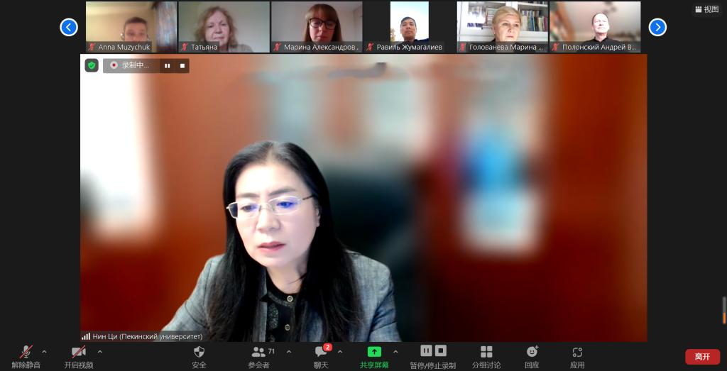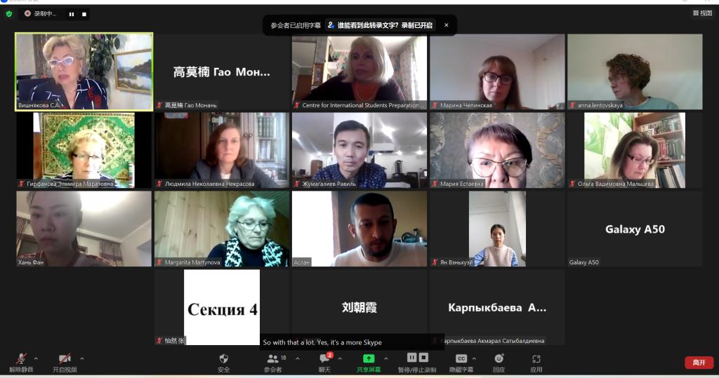 开幕式结束后,来自中国、俄罗斯、白俄罗斯、哈萨克斯坦等国的专家学者通过线上线下结合方式进行开幕式主旨演讲。俄罗斯国立师范大学雷萨科娃教授、北京外国语大学黄玫教授、白俄罗斯戈梅利国立大学科瓦利(В. И.Коваль)教授、哈萨克斯坦国立欧亚大学努尔加利(К. Р.Нургали)教授、上海外国语大学张晖博士、俄罗斯莫斯科理工大学赫罗莫夫(С. С. Хромов)教授、俄罗斯圣彼得堡国立大学莫斯科夫金(Л. В. Московкин)教授、我校李谨香副教授等8位国内外知名高校的专家学者,分别就对外俄语教学、俄语高级翻译人才培养、中国与东斯拉夫民族传统文化比较、俄语文学中的哈萨克斯坦本土文本、斯特鲁伽茨基兄弟科幻书写中的大自然形象、语言教学论视域下的俄语语法新现象、中俄两国俄语教学体系比较、中国当代俄语学等问题作主旨发言。