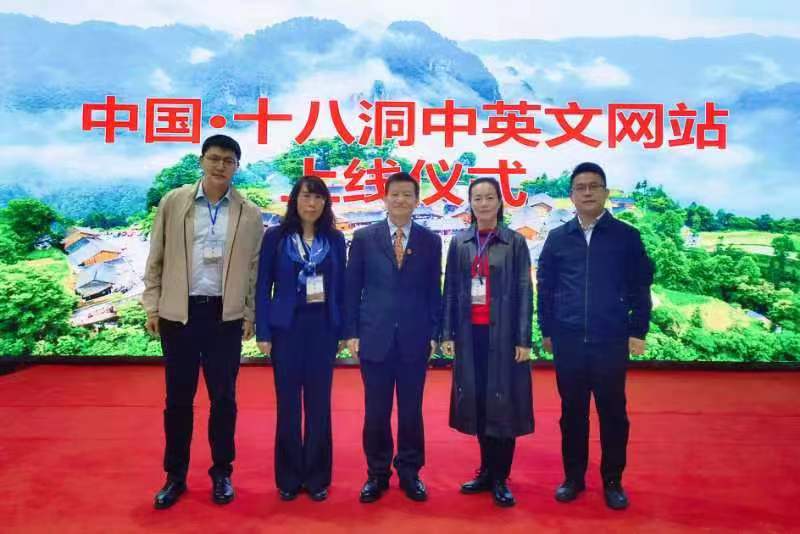 随后,肖凌之、虢正贵、蒋洪新、张帆、廖良辉、贺弘联共同启动共同启动“中国·十八洞”中英文网站上线仪式。