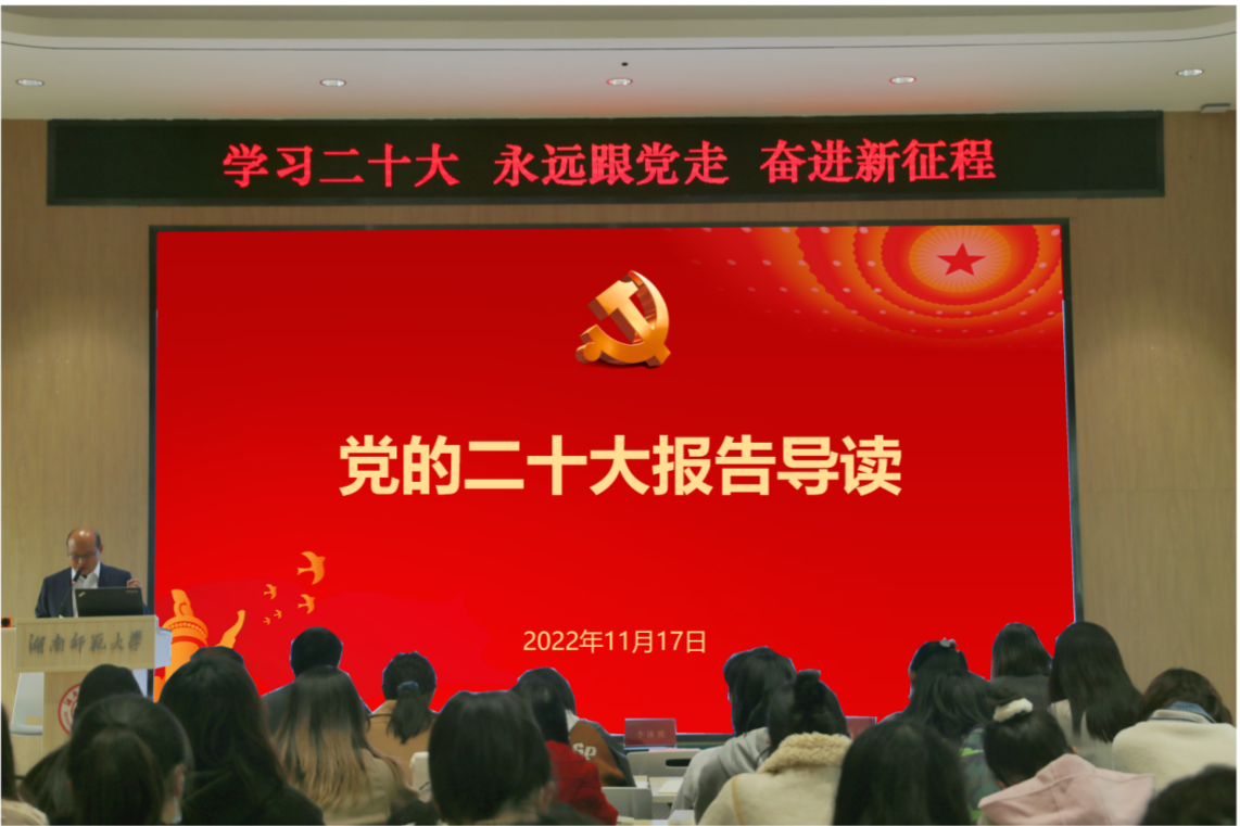 李泳波导读党的二十大报告,简述了党的二十大报告中的相关内容并强调了党的二十大报告主题以及马克思主义教育在学院党建工作中的重要性,深刻总结新时代以来党和国家发生的历史性变革,阐述了将学生培养为担当民族复兴大任的时代新人的历史使命。