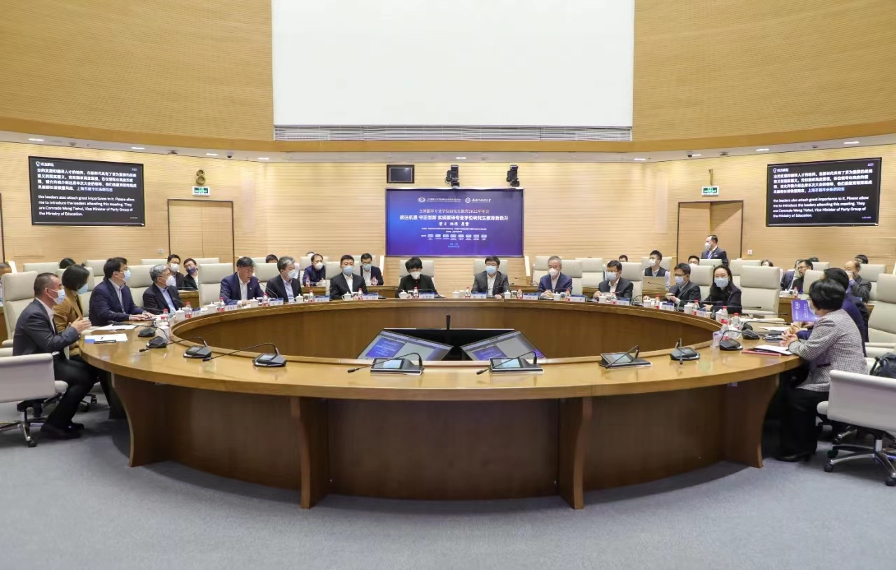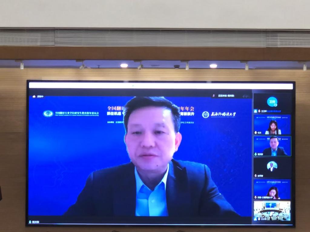 近日,全国翻译专业学位研究生教育2022年年会以线上线下结合的方式在上海外国语大学举行。中国外文局局长、中国翻译协会会长杜占元,教育部党组成员、副部长翁铁慧,上海市副市长陈群出席开幕式并致辞,中国外文局副局长、教指委主任委员于涛,上海外国语大学校长李岩松出席开幕式并致欢迎辞。教育部学位管理与研究生教育司(国务院学位委员会办公室)二级巡视员唐继卫,上海外国语大学党委书记、教指委副主任委员姜锋,中国翻译协会常务副会长、教指委专家委员会主任、中国外文局原副局长兼总编辑黄友义,科大讯飞公司董事长刘庆峰分别作大会发言。教指委副主任委员、欧洲科学院院士、我校党委书记蒋洪新教授出席会议并在闭幕式作大会总结发言。