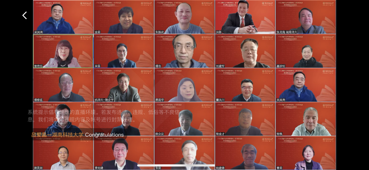 22名专家学者先后发言,他们对新书的发布表示祝贺,高度评价了《T.S.艾略特文学思想研究》的学术价值,希望蒋洪新教授在相关研究领域继续深耕,期待更多学者的参与和更多的研究成果。