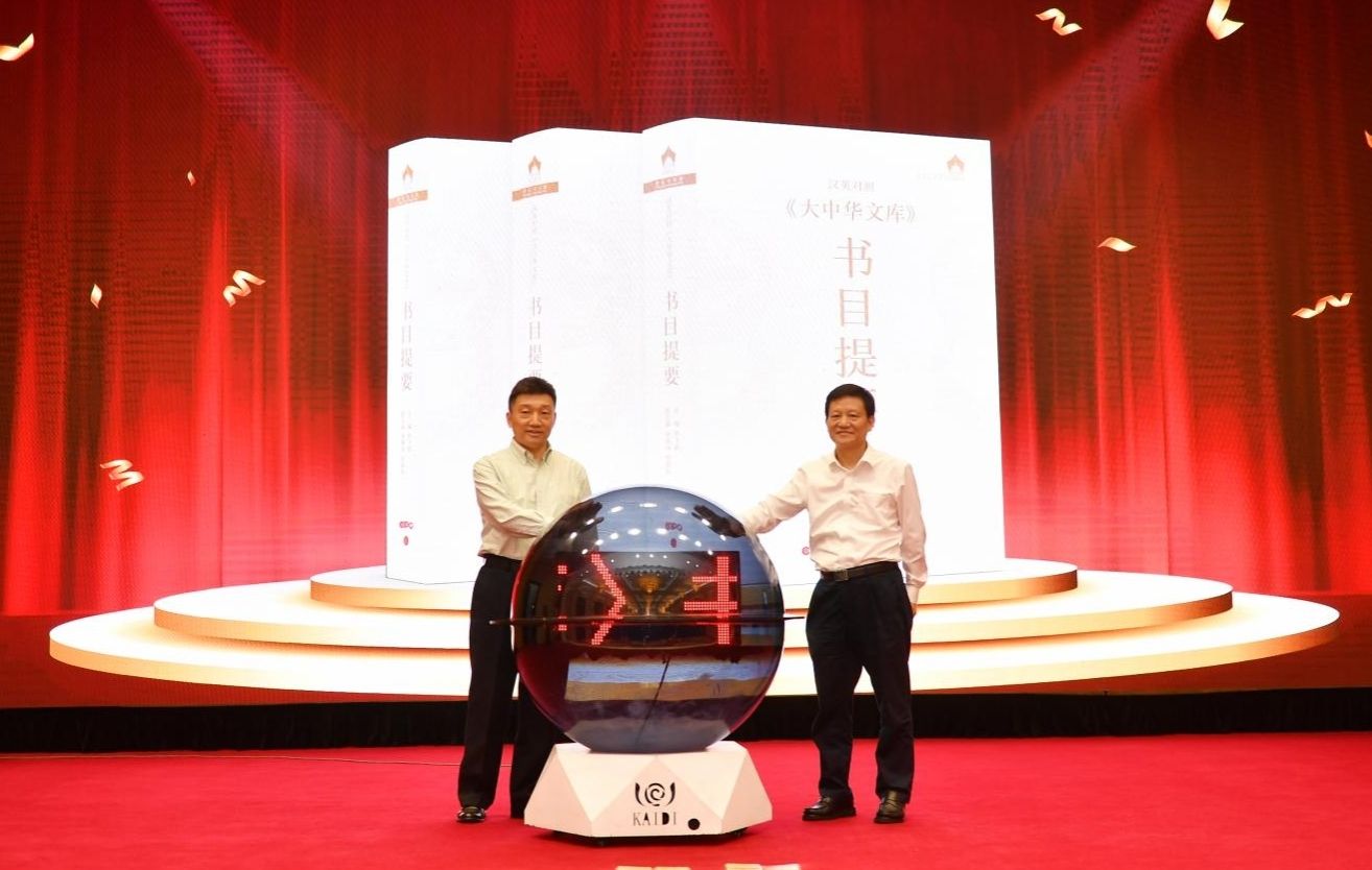 与会专家学者共同见证《汉英对照〈大中华文库〉书目提要》新书发布,于涛、蒋洪新共同为新书揭幕。