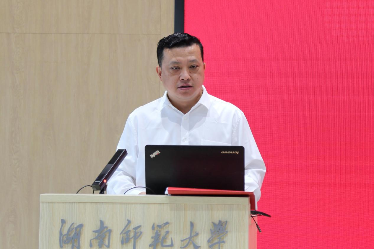 黄玉龙对基地的成立表示热烈祝贺,并对我校的精心筹备表示感谢。他表示,共建翻译研究与实践基地是外文局翻译院与湖南师大澳门pg官方电子平台联合培养高端翻译人才的有益尝试,也是加快落实中央关于全国翻译人才自主建设战略部署的具体举措。实践基地可以为双方开展深层次、多领域的合作搭建平台。他对基地的建设提出了三点希望:一是要聚焦国家战略需求,大力加强国家翻译能力建设。外文局翻译院愿与湖南师大一道,以服务国家总体战略为出发点,聚焦多语种翻译研究、实践创新和人才培养,共同打造一支懂语言、精专业、通传播的翻译国家队;二是要坚持应用导向,打造高端翻译人才蓄水池。翻译实践基地是政产学研用一体化合作培养高层次人才的重要形式,为学生的发展提供有力支撑,让学生在实践、历练和磨炼中逐渐成长为高端翻译人才、政治行业领军人才乃至名家大师。三是要抓好督促落实,推动基地建设走深走实。要建立科学有效的协同协作机制,继续加强沟通配合,推行行业学业双导师制,开展课题联合攻关、项目协作、管理培训、经验交流、部门协作等,推动基地项目常态化运行,形成以培养高素质翻译人才为目标的可持续发展实践平台,为推动国家翻译能力建设和国际传播能力建设提供坚实的人才支撑。