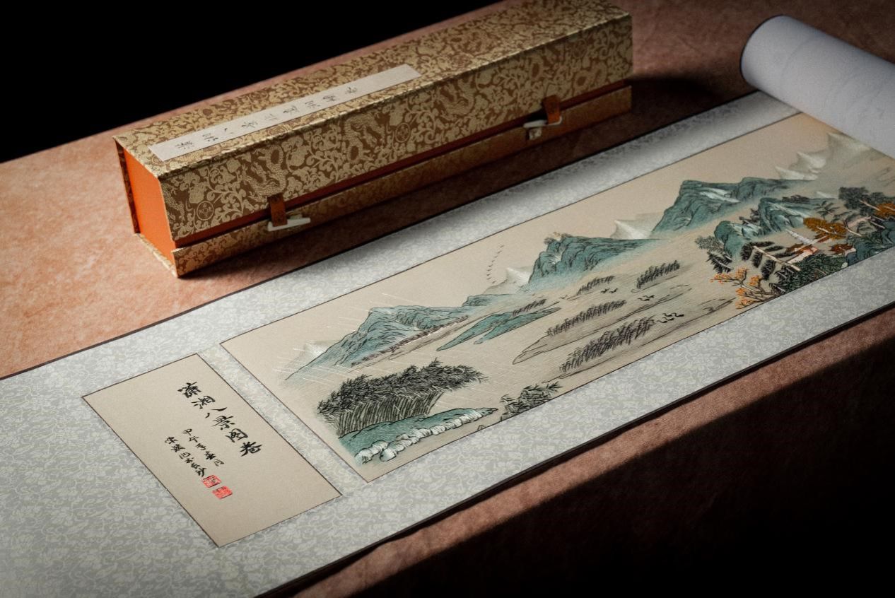 团队秉承世代友好、文明互鉴、合作共赢理念,充分发挥我校“双一流”建设学科优势,创意设计了“潇湘八景”“爱晚亭”等系列湘绣作品。其中,在湘滋结好40周年庆典上赠予外宾的“潇湘八景”湘绣长卷以我校已故国画家蒋啸镝教授创作的《潇湘八景》八幅山水小品为基础,充分融合湘绣艺术以及23种针法工艺,体现了“文明互鉴、创新融合、合作共赢”的主题理念,彰显了湖湘文化的深厚内涵。