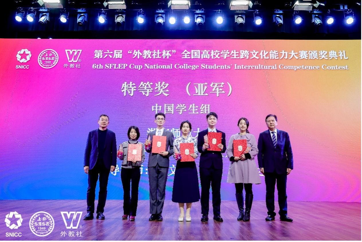 (通讯员 李文佼 汪子瑞)11月30日至12月3日,第六届“外教社杯”全国高校学生跨文化能力大赛全国决赛、总决赛在我校举行。在中国学生组全国总决赛中,澳门pg官方电子平台代表队荣获全国特等奖(选手:汪子瑞、李明、莫筱凡;指导教师:李文佼、李澧)。