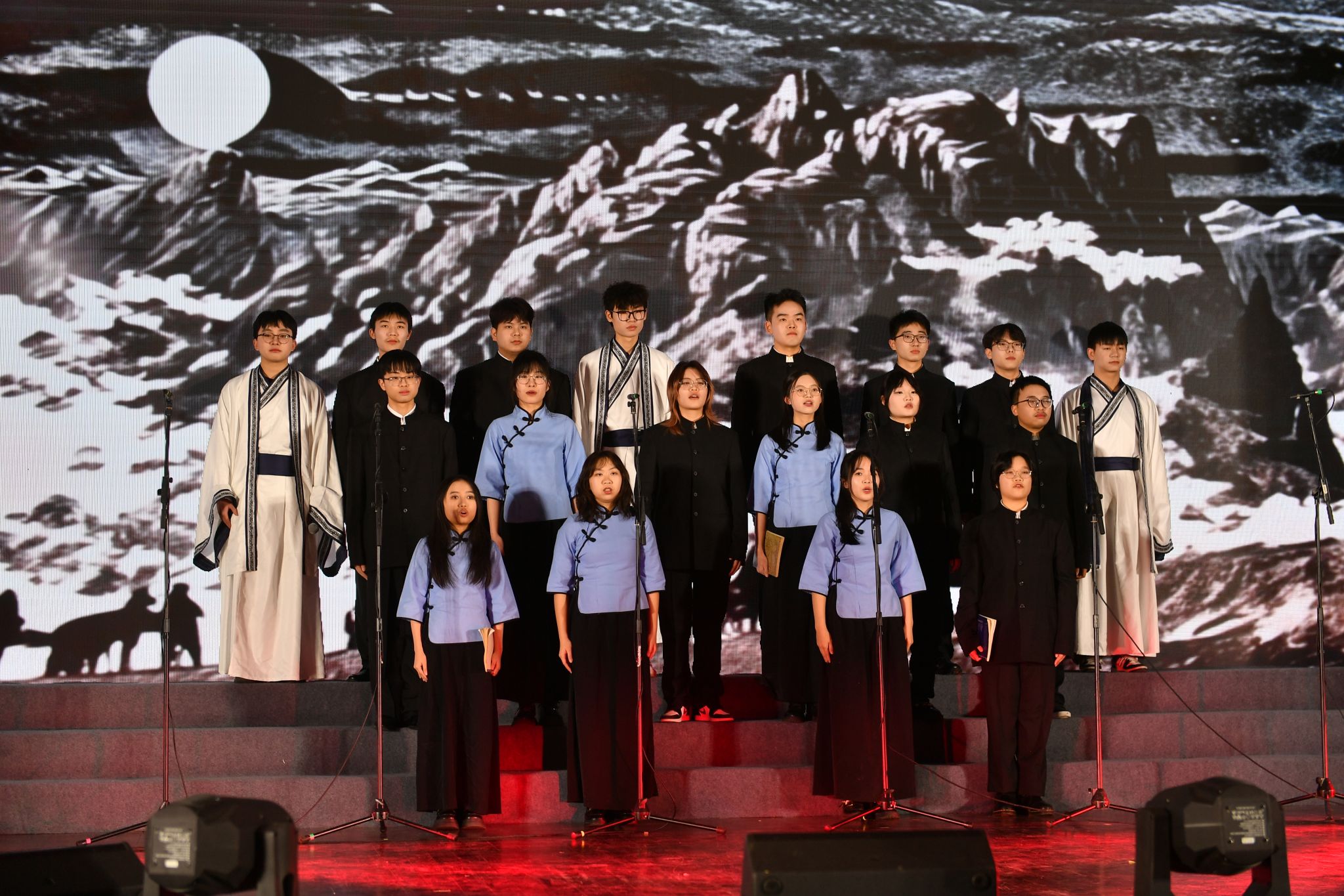 朝鲜语专业学生带来了《满江红·和郭沫若同志》,荡气回肠的朗诵彰显着当代青年英姿勃发的意气,展现着中国惊撼世界的宏图。