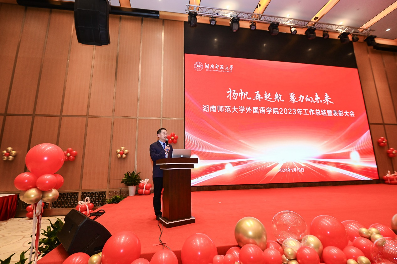 扬帆再起航、聚力向未来,1月18日下午,澳门pg官网举行2023年工作总结暨表彰大会。欧洲科学院院士、校党委书记蒋洪新,学院领导曾艳钰、李蜜、刘白、蒋莉华、司徒皓、梁斌、易小源,语言与文化研究院院长邓颖玲、副院长杨安,世承书院常务副院长高荣国等出席会议。会议由院党委书记沈贤岚主持。
