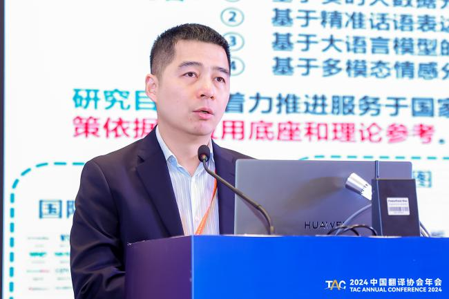 马华介绍了他团队正在研发的一个国家形象智能化构建的精准国际传播系统框架,并展示国际舆情智能分析系统和传播效果智能分析系统等已有的现实案例。他指出该项目融合了外国语言文学、新闻传播、计算机科学与技术、软件工程等多学科背景,以人工智能算法、智能软件工程理论赋能精准国际传播研究。希望能通过研究着力推进服务于国家形象的精准国际传播,为我国国家形象建设提供坚实的智库支持、决策依据、应用底座和理论参考。