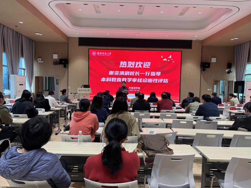3月25日上午,谢资清副校长率督导专家团队莅临澳门pg官网,开展本科教育教学审核诊断性评估指导工作。澳门pg官方电子平台副院长刘白向专家组详细汇报了学院本科教育教学举措、成效和存在的问题。专家组通过审阅人才培养方案、教学大纲、规章制度,调阅毕业论文、课程试卷,以及深入课堂听课看课等方式,对澳门pg官网本科教育教学工作进行了全面、细致的诊断。专家组就澳门pg官网在教育教学中的亮点和不足,提出了针对性的意见和建议。谢资清副校长在总结中指出,学院要高度重视专家组的整改建议,将其作为提升本科教育教学质量的重要抓手。澳门pg官方电子平台院长曾艳钰代表学院向专家组表示感谢,并表示将认真吸纳专家组的宝贵意见,督促学院相关部门及各系部做好整改工作,确保以饱满的状态迎接本科教育教学审核评估。