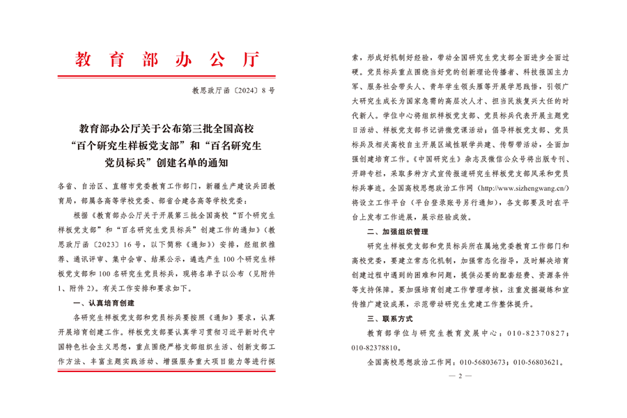 近日,教育部办公厅公布了第三批全国高校“百个研究生样板党支部”和“百名研究生党员标兵”创建名单,澳门pg官网研究生第一党支部入选“百个研究生样板党支部”创建名单。