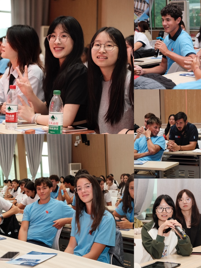 歌曲旋律悠扬动听,歌词中的mate(马黛茶)、tortas fritas(油饼)、siempre que llovió, paró(否极泰来)等民俗食品和俗语表达更是有助于同学们了解乌拉圭文化、拓宽知识面。西班牙语班同学们的歌声引得乌拉圭赛艇队队员们齐声合唱,一起将活动推向高潮。中乌两国青年的优美合唱打破了双方第一次见面的局促,在互动环节中两国青年侃侃而谈、轻松交流,双方受益良多。