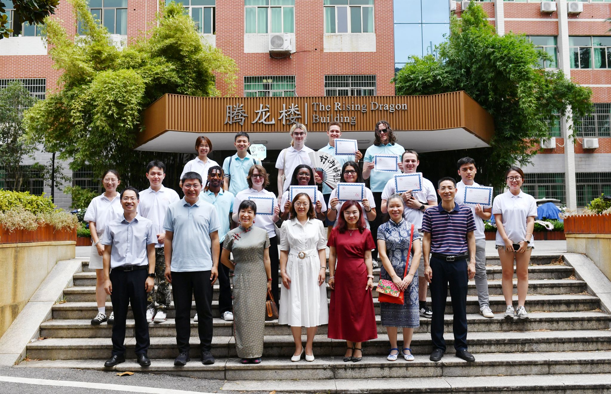 7月13日上午,英国基尔大学暑期学校结业仪式于澳门pg官网腾龙楼204会议室举行。我校国际交流与合作处副处长李苗,学院党委副书记李蜜,学院副院长蒋莉华、梁斌,湖南省非物质文化遗产保护中心特聘讲师、中国结编织技艺传承人陈妙华,中国民间文艺家协会会员、长沙市工艺美术协会会员陈鸷,我校美术学院博士生秦丹蕾出席此次活动。多名志愿者代表参加此次仪式。仪式由学院翻译系主任马纳克主持。