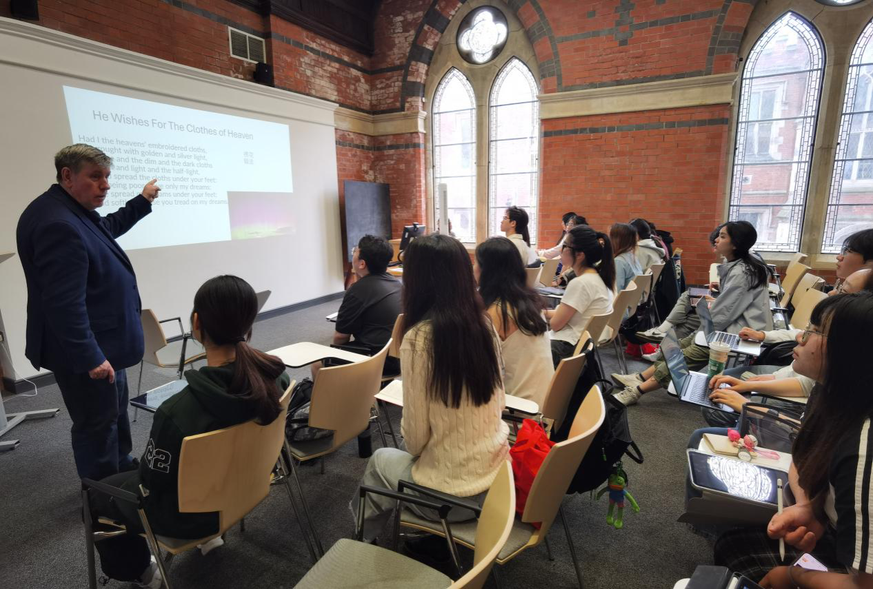 曾艳钰实地考察了学生宿舍,参加了同学们组织的晚间读书会,和同学们一起欣赏了歌曲作家、表演艺术家Peter Wilson博士关于创造性与歌曲改编(广义的翻译)的讲座和演奏会,听取了David Johnston教授的关于翻译与创造性的课程。