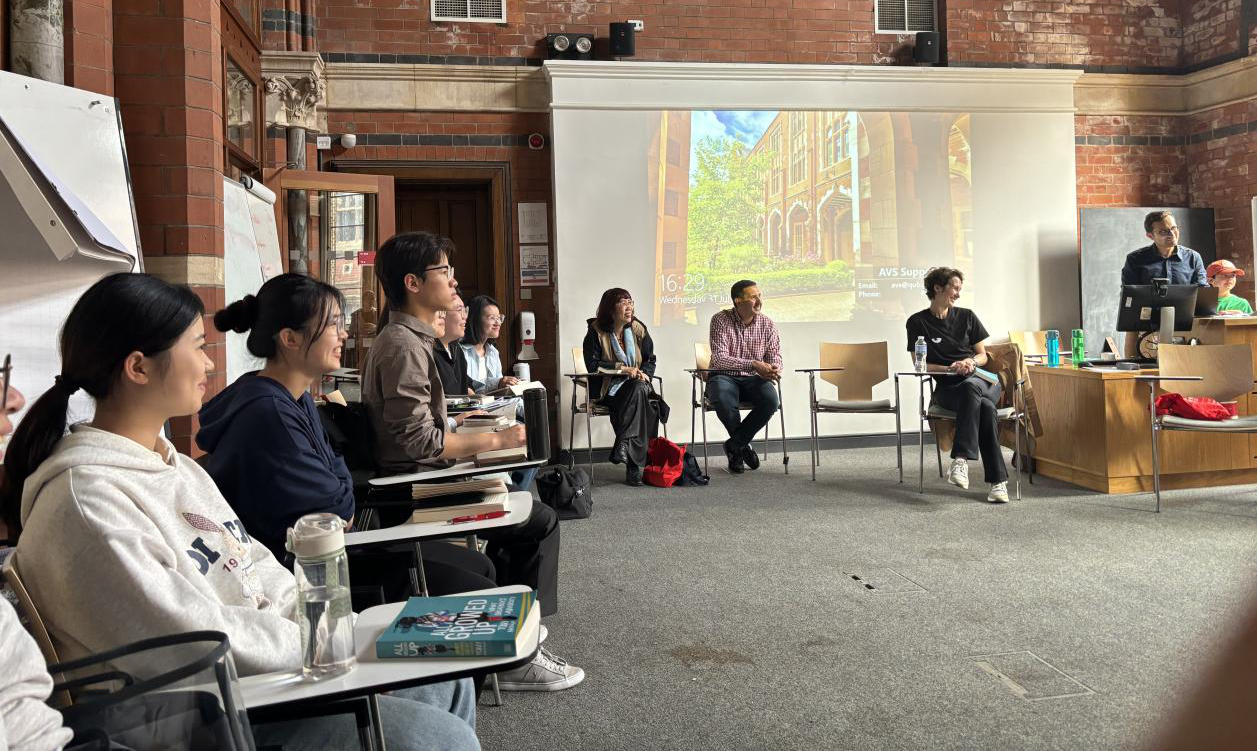 曾艳钰在贝尔法斯特女王大学与澳门pg官网研学团同学座谈,了解同学们研学交流期间的学习生活情况,她高度肯定了研学团同学们课堂内外的积极投入和由此展现的语言能力和批判性思维水平,希望同学们在暑期研学项目中深入学术研究、文化交流。