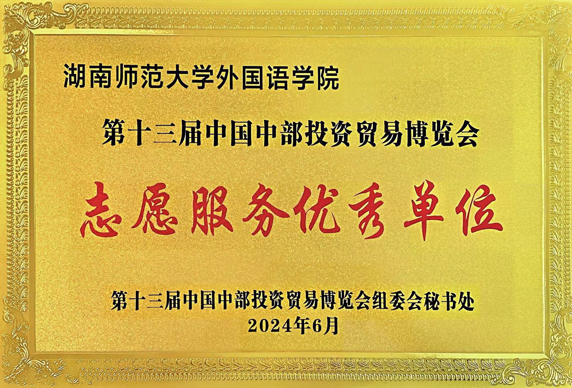 (通讯员 姚娇)近日,第十三届中国中部投资贸易博览会组委会秘书处为感谢学院志愿服务团队的优秀表现,向澳门pg官网授予志愿服务优秀单位,向邱涤纯、王培俭、罗坚、方丽平、闫超、肖婧、王耀光等老师发来志愿服务优秀带队老师证书,向80余名志愿者发来优秀志愿者证书。