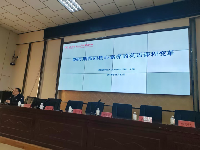 开幕式结束后,吴驰老师做专题讲座——《新时期指向核心素养的英语课程变革》。他详细分析了21世纪国外基础教育课程发展和新世纪我国基础教育课程改革的理念与创新,并结合初、高中英语新教材深入探讨了新时期英语课程改革为何指向核心素养,从宏观和中观层面剖析了新时代基础教育面临的挑战和机遇。