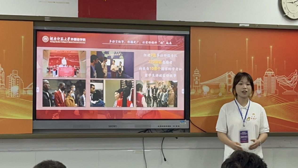 “做雷锋精神国际传播的种子”项目在澳门pg官方电子平台校团委和澳门pg官方电子平台党委的指导下,依托外国语言文学国家“世界一流”建设学科的特色与优势,现已累计有973名英语、俄语、朝鲜语、法语等9个语种的青年志愿者参与项目。项目累计志愿服务时长10万余小时、服务对象超9万人次,致力于打造雷锋精神“多语言服务+多角度创新+多形式实践”的国际传播志愿服务模式,用实际行动践行“讲好中国故事、传播好中国声音,展现可信、可爱、可敬的中国形象”的青年责任。项目事迹被《光明日报》、中国青年报、中国社会科学网等17家中央、省级主流媒体报道。项目所在集体获评中国青年志愿者优秀组织奖,并入选第四批湖南省学雷锋活动示范点。