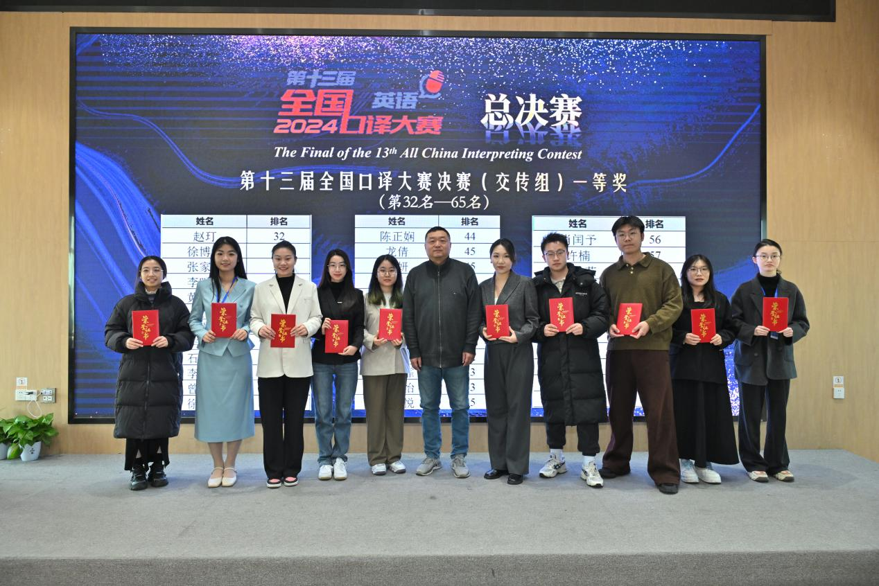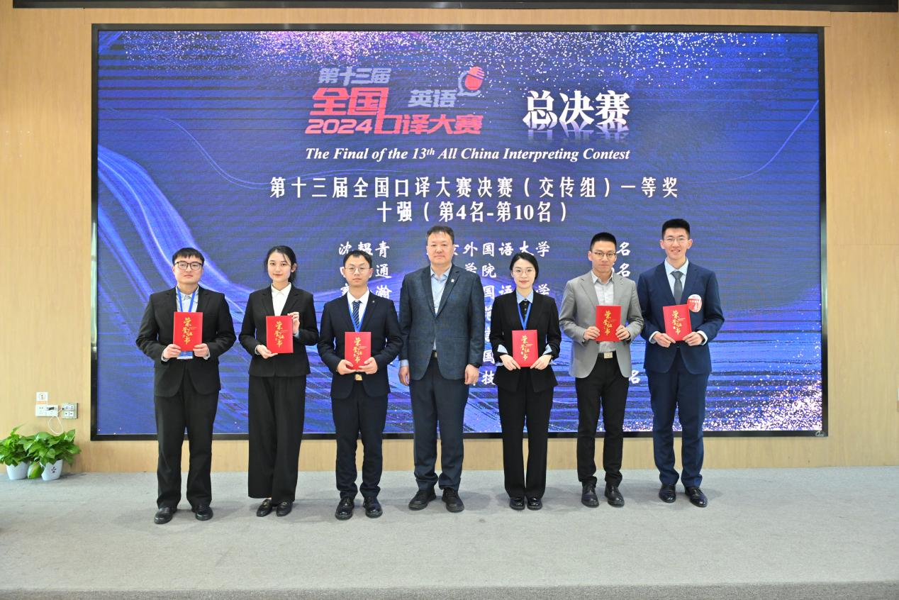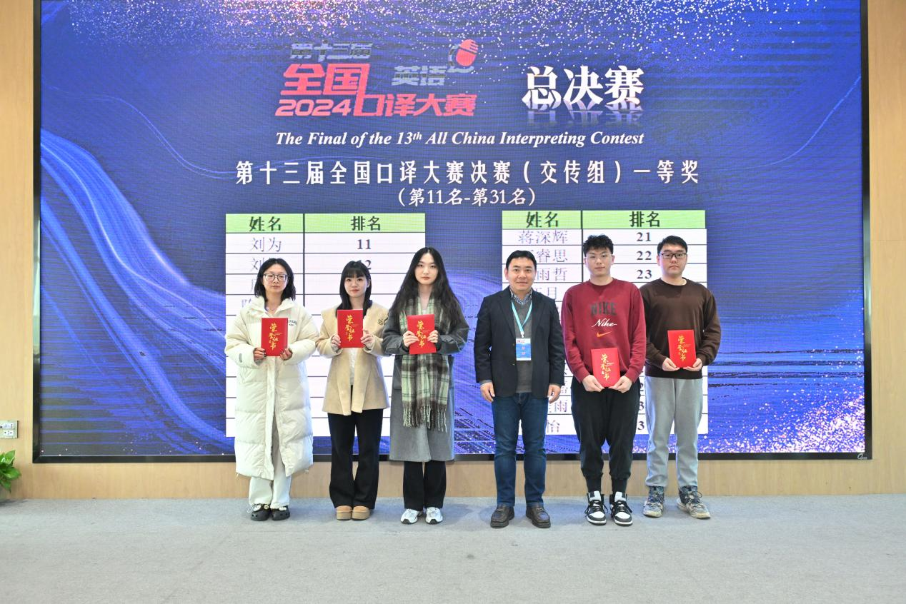我校MTI口译方向研究生彭璐(左三)获第十三届全国口译大赛(英语)总决赛(交传组)一等奖