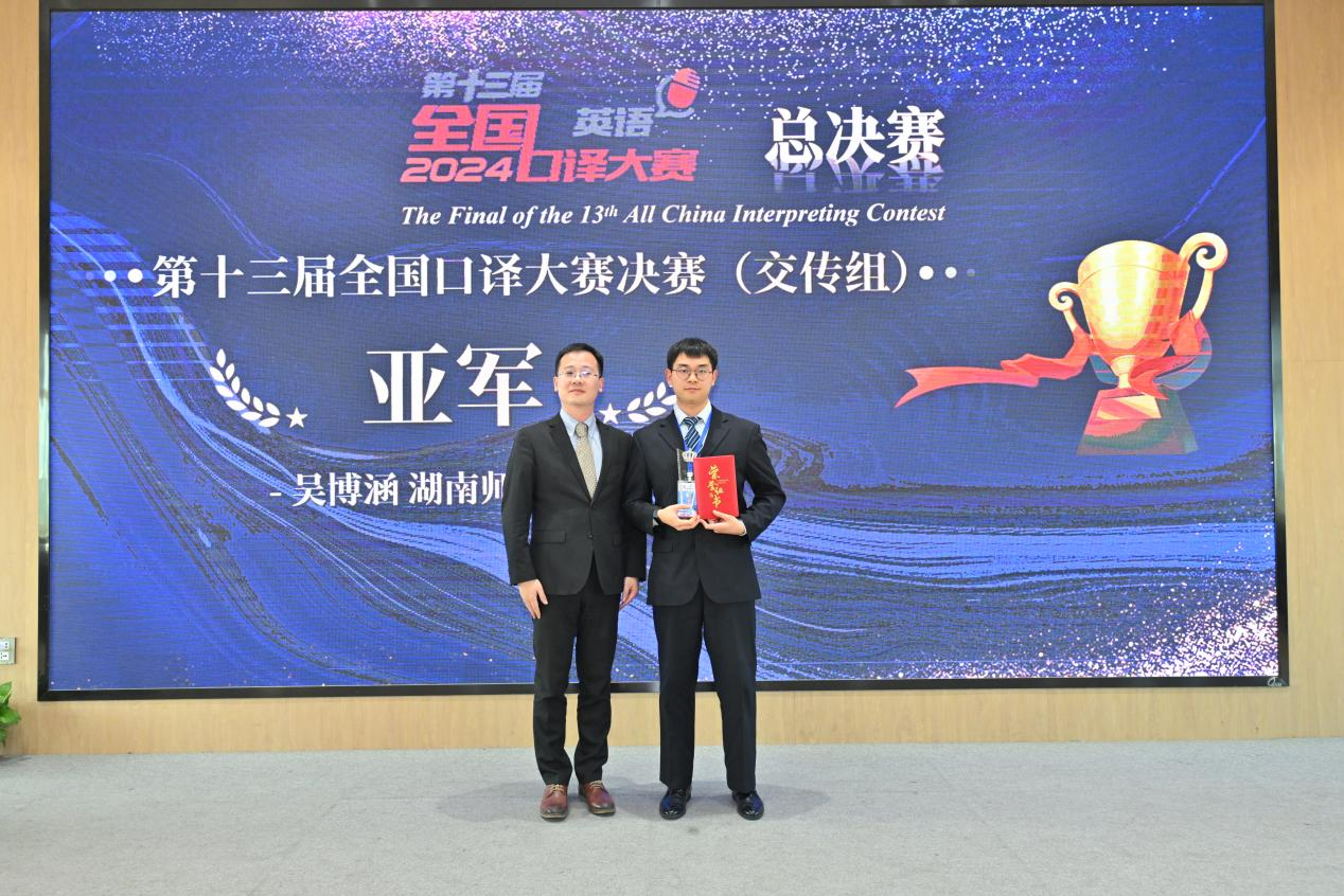我校MTI口译方向研究生吴博涵在第十三届全国口译大赛(英语)总决赛(交传组)中喜夺亚军