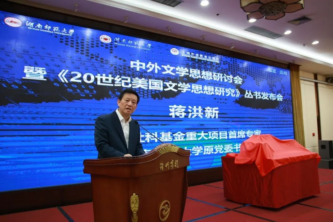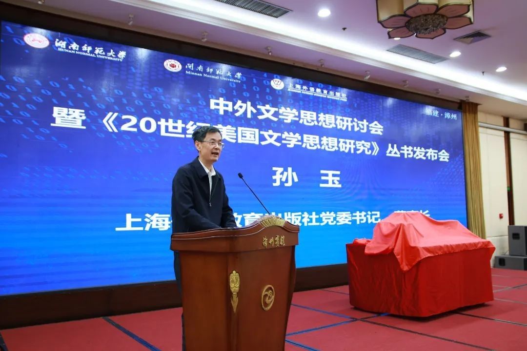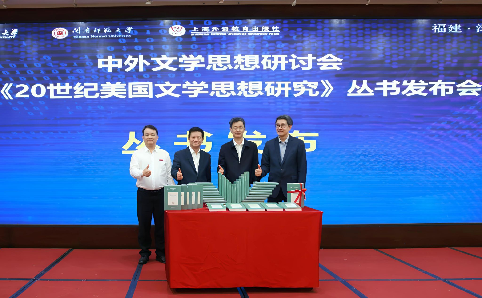 开幕式后举行国家社科基金重大项目结项成果、国家出版基金资助成果《20世纪美国文学思想研究》丛书发布会。首席专家蒋洪新和上海外语教育出版社党委书记、董事长孙玉分别致辞。蒋洪新表示,文学思想研究的意义,正是在差异中见共鸣,在交锋中遇新机,本套丛书从跨文化视角,批判性审视和研究了20世纪美国文学思想,为丰富中国本土文学思想、促进中华民族文化复兴和构建人类命运共同体发挥思想伟力。孙玉在发言中指出,丛书不仅从文学视角揭示了美国崛起的内在逻辑,更通过思想文本的译介交流彰显其推动中美人文对话的实践价值。