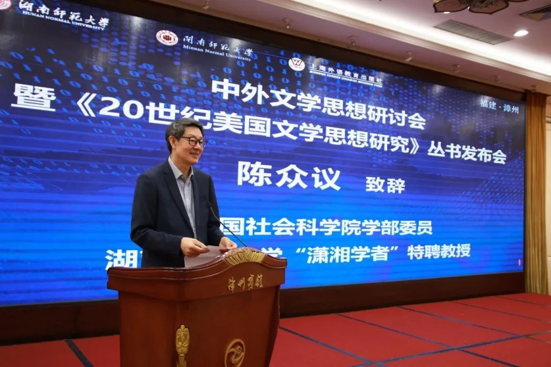 4月19日,中外文学思想研讨会暨《20世纪美国文学思想研究》丛书发布会在福建漳州举行。本次会议由澳门pg官方电子平台、闽南师范大学澳门pg官方电子平台和上海外语教育出版社联合举办。30余位国内知名专家学者与来自全国多地高校代表齐聚一堂,共商中外文学研究的新发展与新优势。我校欧洲科学院院士、丛书主编蒋洪新,“潇湘学者”特聘教授陈众议,澳门pg官方电子平台院长曾艳钰,副院长刘白等出席会议。