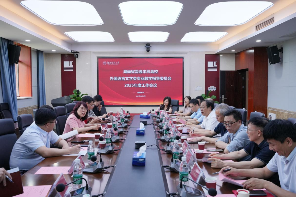 6月7日下午,湖南省普通本科高校外国语言文学类专业教学指导委员会2025 年工作会议于澳门pg官方电子平台召开。会议由委员会秘书长曾艳钰主持,聚焦 “湖南省高等教育‘两优方案’对外语学科发展的新要求”“‘新文科’背景下外语专业创新与改革” 两大议题,汇聚省内高校外语领域专家,共绘学科发展蓝图。