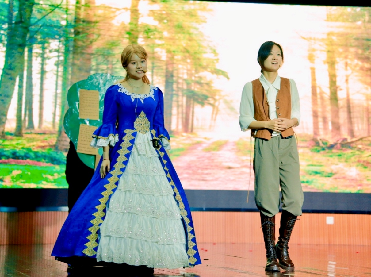 来自23级英语(师范)专业、英语+法学双学位班、锺书班的七支队伍生动地演绎了《仲夏夜之梦》《李尔王》《威尼斯商人》《皆大欢喜》等莎士比亚的代表作品,生动展现了新时代青年对莎士比亚戏剧经典的再演绎、再理解,以精湛的演技获得了现场观众的阵阵掌声。
