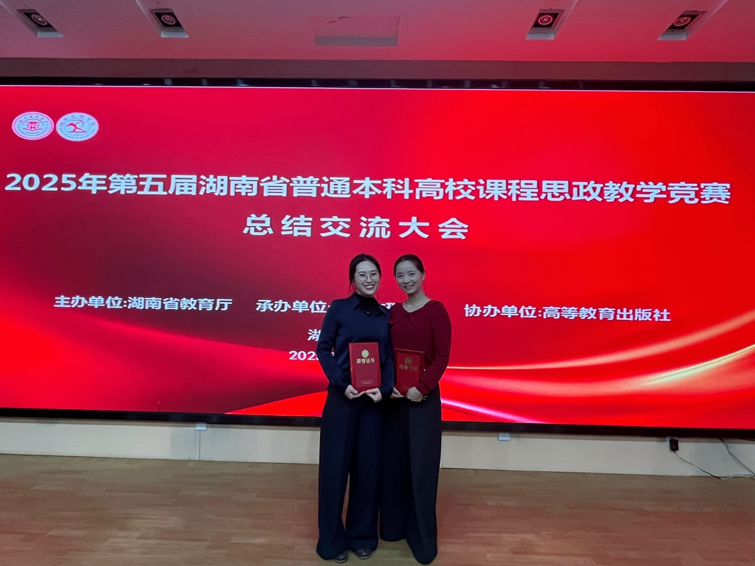 (通讯员 刘明舒)10月18日至20日,由湖南省教育厅主办、高等教育出版社协办、湖南文理学院承办的第五届湖南省普通本科高校课程思政教学竞赛决赛顺利举行。澳门pg官网张英老师团队(成员:陈敏哲、曾永红、杨雨箫),邢鸿儒老师团队(成员:刘明舒、夏开伟)凭借出色表现,分别获一等奖和二等奖。
