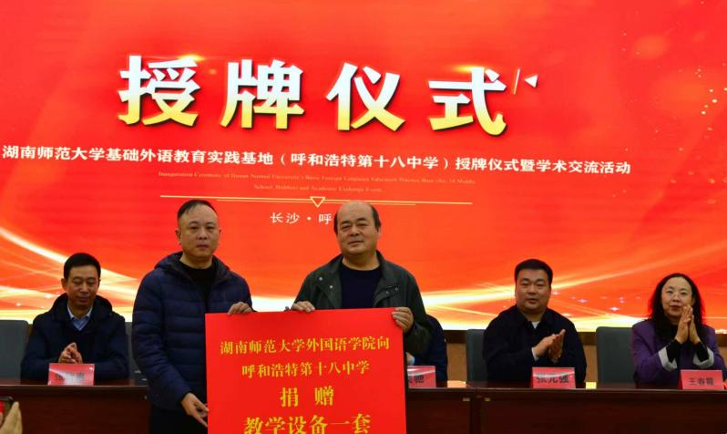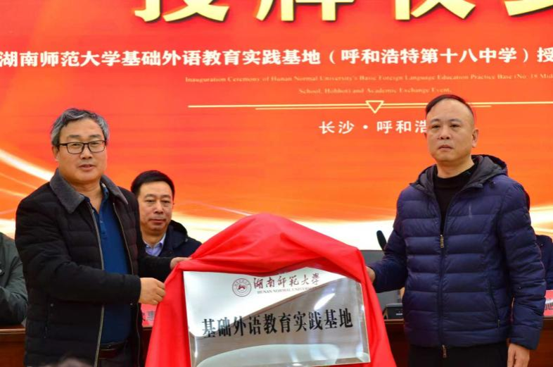 活动以“校院携手,共育英才”为主题。仪式伊始,安雪峰致欢迎辞。他指出,我校基础外语教育实践基地的落户,为呼市十八中开启了通向更高水平教育科研平台的大门;学校将依托我校优质资源,深化外语教学改革,提升教师专业素养,助力学生全面发展,推动湘蒙两地基础外语教育协同发展。