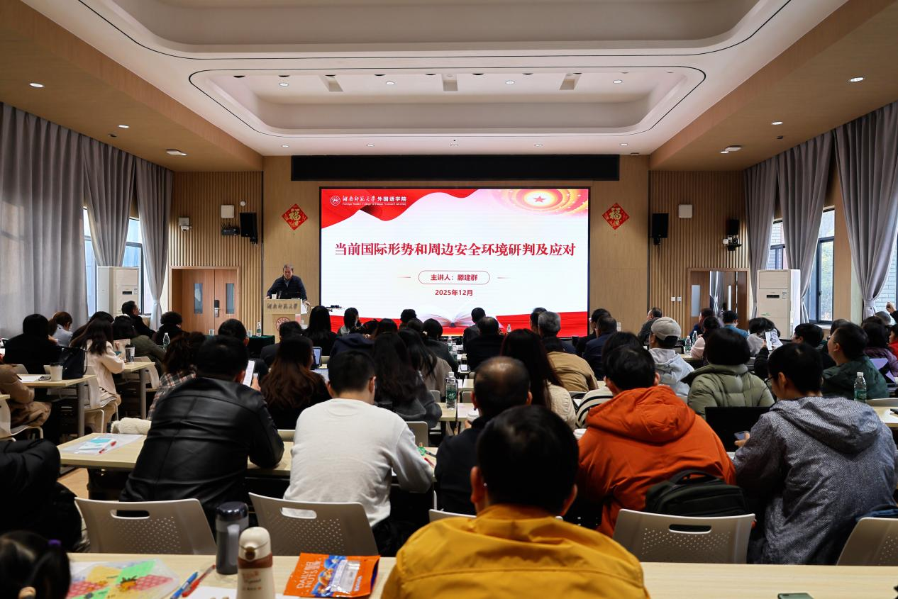 滕建群聚焦“当前国际形势和周边安全环境研判及应对”,结合二十届四中全会精神剖析当前错综复杂的国际格局。他系统解读中美关系、俄乌冲突、中日关系等热点议题,从经济角度解析逆全球化趋势与贸易战的本质,为教职工们进一步理解国际局势、把握时代发展脉络提供了清晰框架。