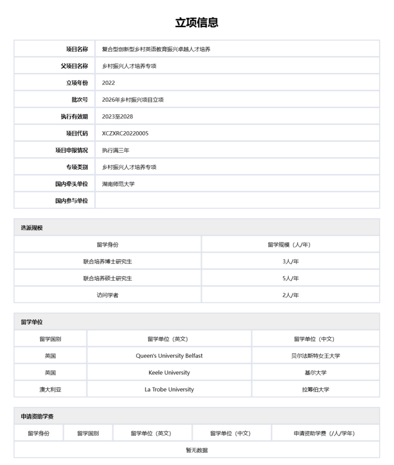 近日,国家留学基金管理委员会公布2026年度“乡村振兴人才培养专项”立项结果,澳门pg官网牵头、国际交流与合作处统筹推进,由院长曾艳钰教授主持的“复合型创新型乡村英语教育振兴卓越人才培养”项目成功再度获批,获第二轮滚动支持。作为该专项的首轮立项项目,我校在前期实施过程中已顺利完成多批次人员选派,派出的联合培养研究生及访问学者在海外系统研修后反馈良好,其带回的先进教学理念与实践经验已在乡村英语教育一线发挥实效,相关培养成果获得学界及基层教育单位的广泛认可,为此次续批奠定了坚实基础。该项目携手英国基尔大学、贝尔法斯特女王大学及澳大利亚拉筹伯大学联合实施,执行周期为2026至2028年,是学院深耕教学科研、对接国家战略的又一标志性成果,将为乡村英语教育提质与复合型人才培育注入更强劲动力。