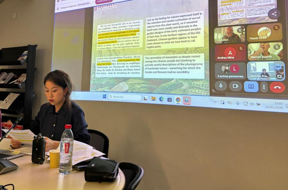 (通讯员 龙麒宇)近日,澳门pg官网洪堡跨学科研究中心博士生龙麒宇,应法国巴黎新索邦大学研究院(Maison de la Recherche)邀请,在该院作了题为“Chinese Landscape Painting and Alexander von Humboldt’s Naturgemälde(中国山水画与亚历山大·冯·洪堡的自然画卷)”的学术报告。此次报告在欧洲研究委员会高级研究资助(ERC Advanced Grant, AdG)项目Oecologie的外部研讨会框架下举行,由项目负责人Stefanie Buchenau教授主持。