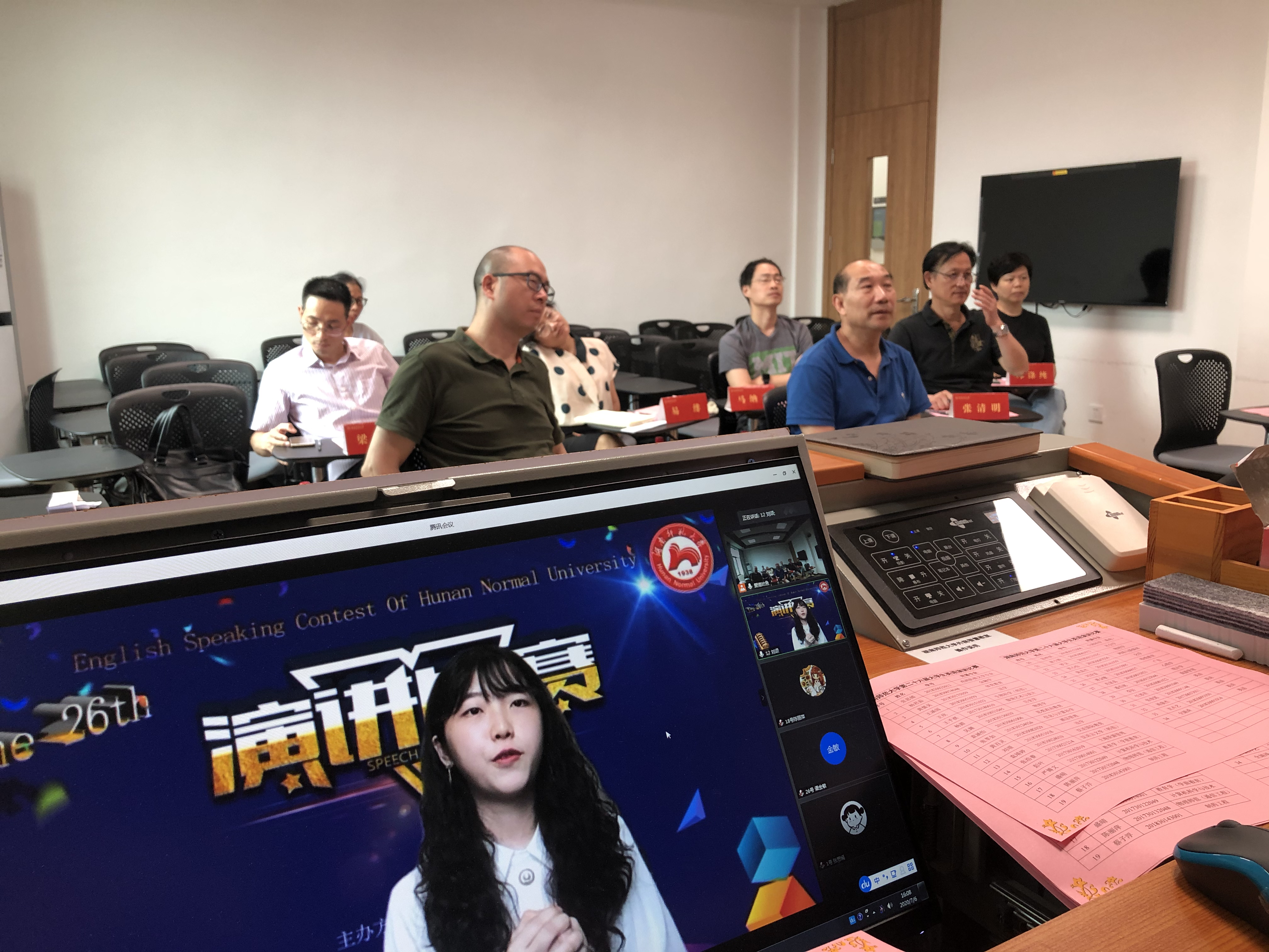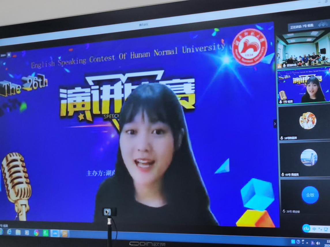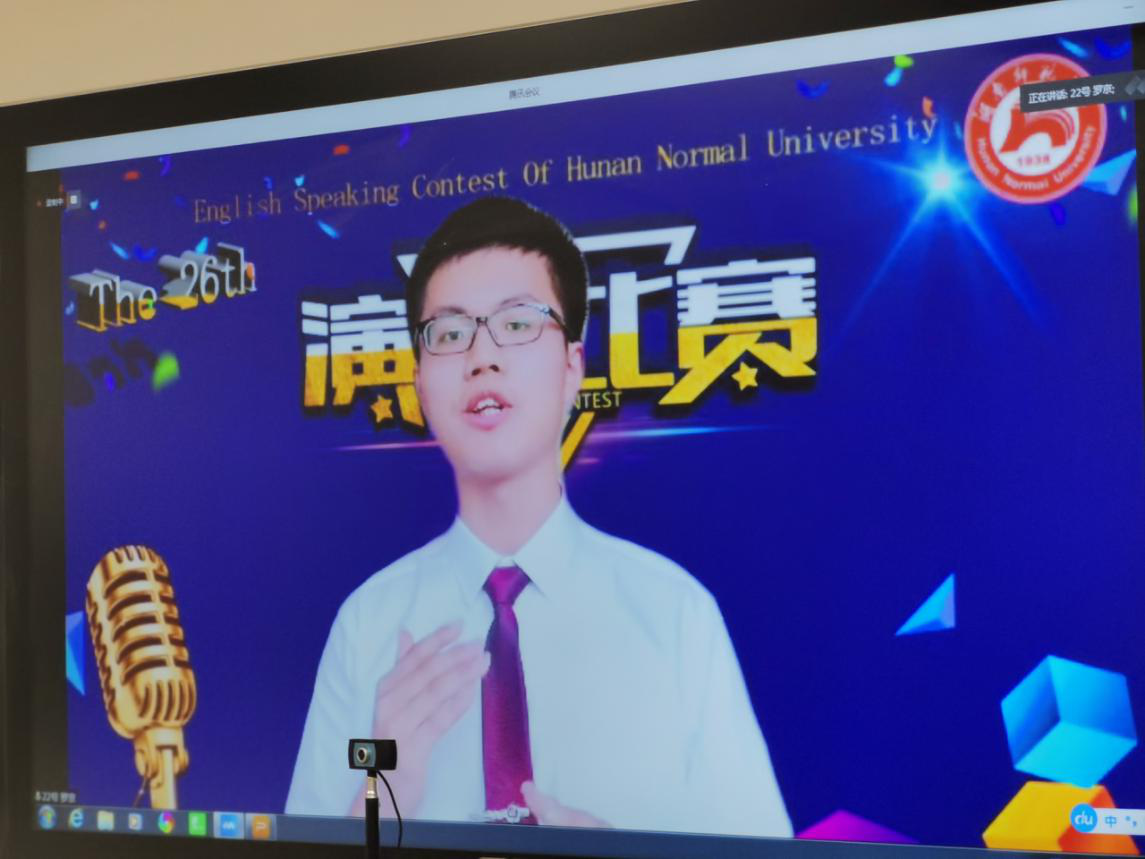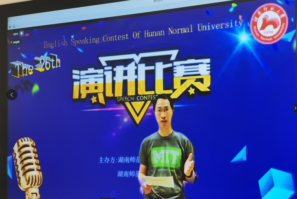 (通讯员邓林 陈彦孜 贺翠蓉)7月6日下午湖南省2020年大学生英语演讲比赛初赛暨澳门pg官方电子平台第二十六届大学生英语演讲比赛在澳门pg官方电子平台通过腾讯会议成功举办,澳门pg官方电子平台副院长谭福民教授担任评委组长,副院长廖光蓉教授代表学校竞赛组委会致开幕词。廖光蓉对非常时期能采用新的形式举办比赛表示欣慰和祝贺,并希望以赛促学,以赛促教,以学促改,不断提升学生综合运用英语的能力,在各级各类竞赛中取得优异成绩,为一流学科建设增光添彩。
