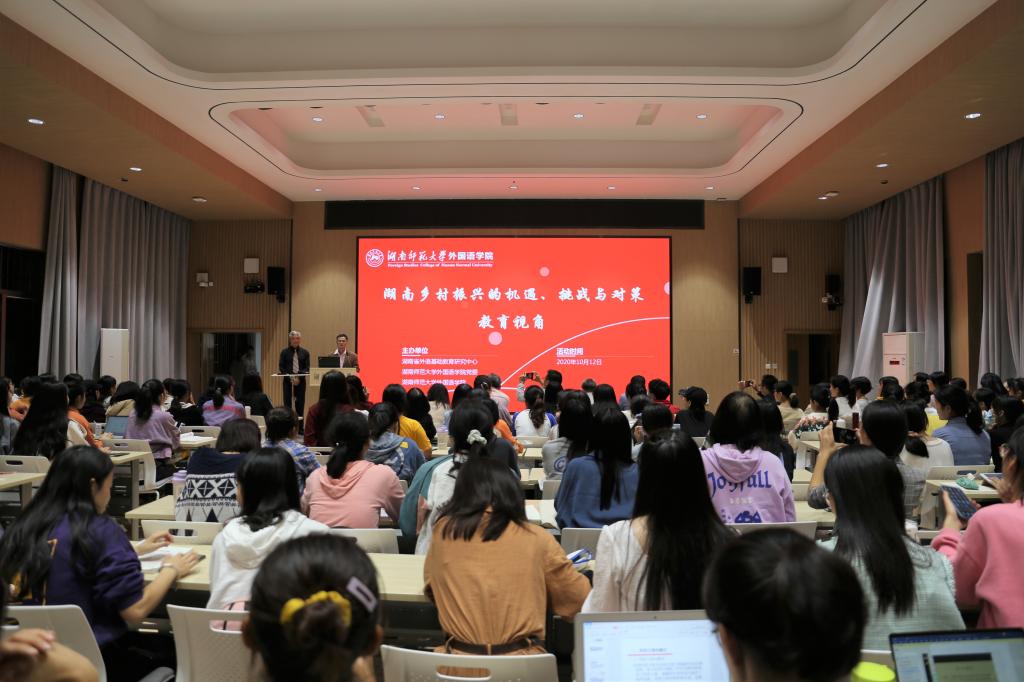 (通讯员 夏秦萍)10月12日晚,由学院党委、行政以及湖南省外语基础教育研究中心联合举办的举办“教育视角下湖南乡村振兴的机遇、挑战、对策”讲座在腾龙楼613多功能厅举行。讲座由澳门pg官网77级校友、浙江工商大学经济学教授王国安主讲,院党委书记唐建文主持,副院长高荣国、湖南省外语基础教育研究中心副主任曾永红、以及教工党支部党员教师、本科生公费师范生、研究生学科教学论方向学生等180多人聆听讲座。