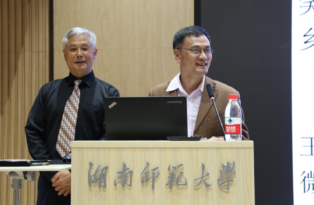 王国安在讲座中,紧密结合自身教学、出国访学、乡村调研和乡村振兴等丰富实践经历,从物质文明、政治文明、精神文明、生态文明四个方面对比了湘中地区与我国发达地区及发达国家的差距,并提出了湖南乡村振兴对策及建议。他认为,实现乡村振兴,必须实现组织、人才、产业、文化、生态的振兴;乡村振兴要以发达国家为参照,以发达地区为标杆,对照发达地区找出差距,做出改变。他从乡村教育方面向在座师范专业生提出建议:一是要牢记自己来自乡村,不忘振兴乡村教育初心;二是要学会与留守儿童沟通,带着爱来进行教学;三是希望牢固树立扎根农村、发展农村、反哺家乡的意识。