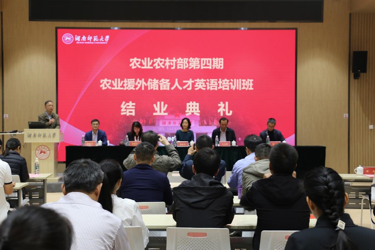 (通讯员 谭超)11月10日,农业农村部第四期农业援外储备人才英语培训班结业典礼在澳门pg官网成功举办。农业农村部国际交流服务中心蔺惠芳副主任、魏梁副处长,湖南省农业对外经济合作中心吴小明副主任,澳门pg官方电子平台院长曾艳钰教授、党委书记唐建文出席结业典礼。典礼由澳门pg官方电子平台副院长司徒皓主持。