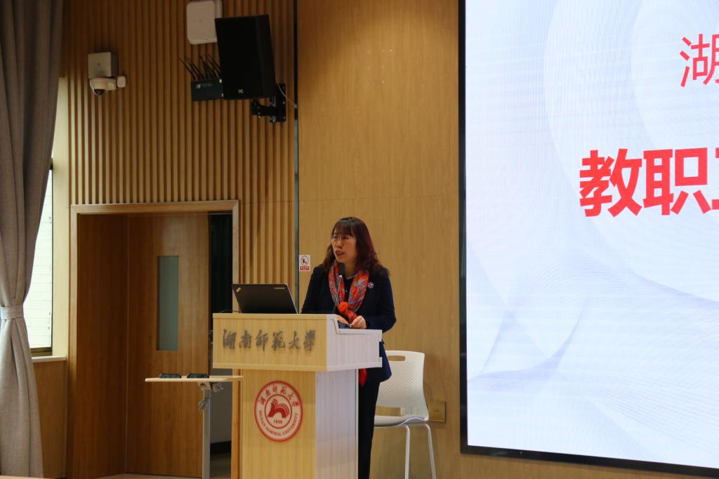 曾艳钰从第五轮学科评估、教师职称评估、毕业就业、大学生心理问题四个方面规划教职工近期工作目标。她向全体教职工解读教育部《关于高校教师师德失范行为处理的指导意见》、《新时代高校教师职业行为十项准则》及《研究生导师指导行为准则》。她结合相关案例,要求全体教职工要严格遵守行为准则,以学生为中心,做好本职工作。