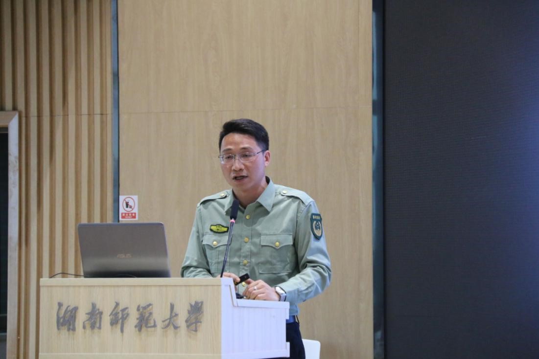 长沙市消防安全宣传中心陈志方教官作消防安全普及讲座。他介绍数起火灾案例,给在场教职工敲响警钟。他指出,教职工平时要多了解消防知识,学习灭火器等灭火器材使用方法,遇见火灾要保持沉着冷静,正确应对紧急情况,让生命多一份保障。