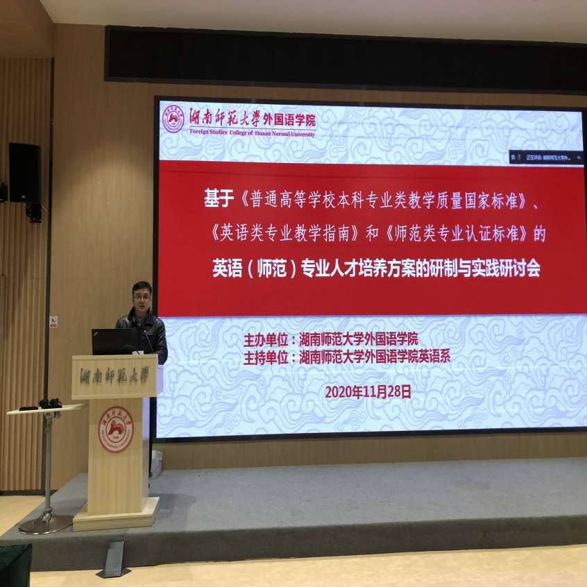 (供稿 英语系)近日,澳门pg官网英语系召开基于《普通高等学校本科专业类教学质量国家标准(外国语言文学类)》《英语类专业教学指南》和《师范类专业认证标准(三级)》的英语(师范)专业人才培养方案的研制与实践研讨会。院长曾艳钰教授致辞出席会议并讲话,会议由英语系主任陈敏哲教授主持。