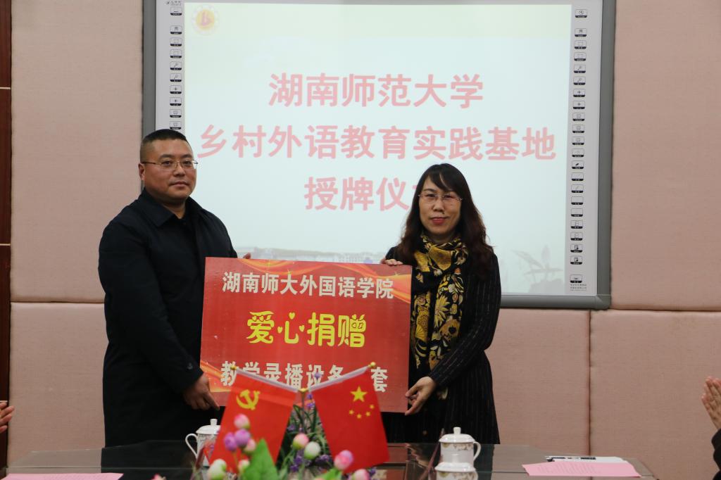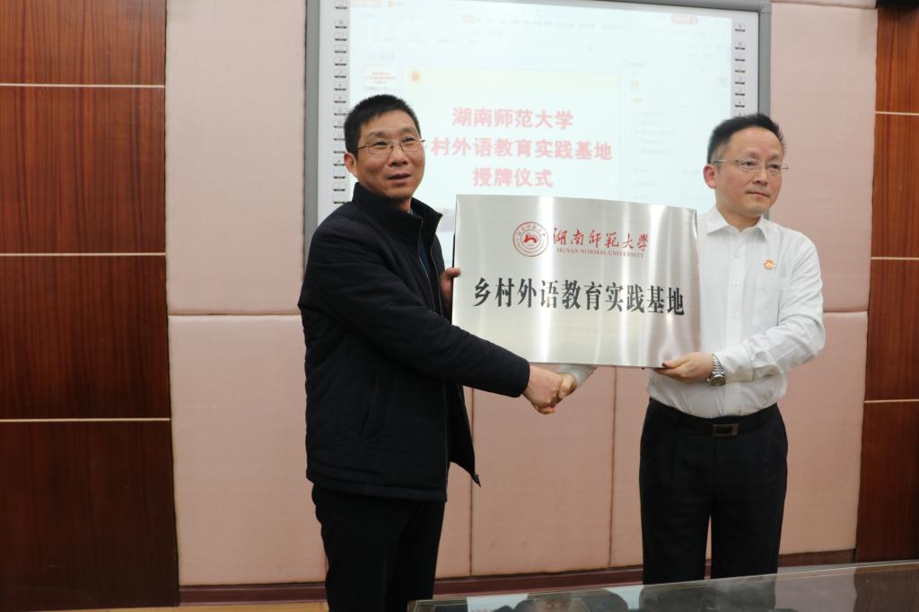 本次授牌仪式标志着湖南师大澳门pg官方电子平台与边城高级中学资源共享、远程教学等系列活动正式开启,对促进边城高级中学英语教师业务素养以及英语教学水平的全面提升有着重大的意义。湖南省外语基础教育研究中心副主任曾永红,澳门pg官方电子平台副教授吴驰、叶冬,花垣县教体局相关负责人、边城高级中学相关负责人参加授牌仪式。