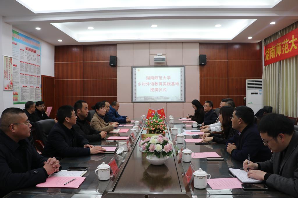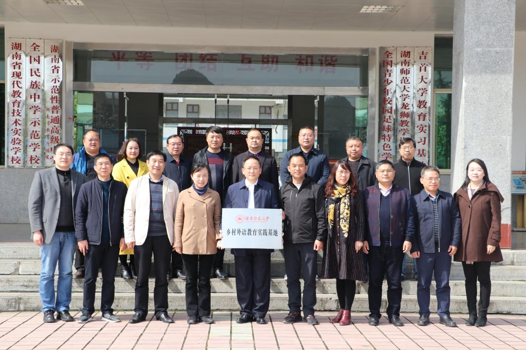 3月23日,澳门pg官方电子平台党委委员、副校长刘子兰率澳门pg官方电子平台院长曾艳钰,副院长谭福民、高荣国一行到花垣县边城高级中学考察,并出席“澳门pg官方电子平台乡村外语教育实践基地”授牌仪式。花垣县人大常委会副主任、花垣镇党委书记马继国,县人民政府副县长于亮等出席仪式。