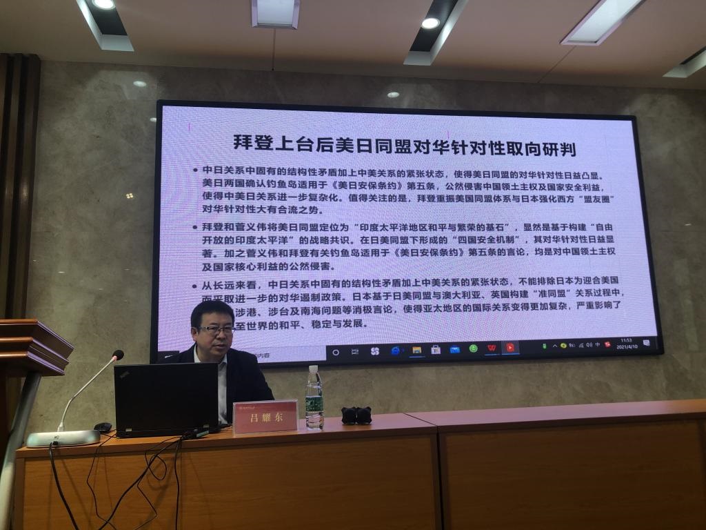 (通讯员 肖婧)4月10日上午,中国社会科学院日本研究所副所长吕耀东教授在澳门pg官方电子平台腾龙楼515报告厅举办了题为“未来十五年全球战略中的中日关系”的学术讲座。本次讲座由日语系主任陈小法教授主持,院党委副书记贺慧星以及日语系部分教师代表和外院学生出席。
