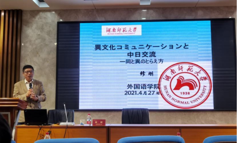 (通讯员 许亚傲)4月27日下午,教育部高等学校外国语言文学类专业教学指导委员会副主任委员、日语专业教学指导分委会主任委员、中华日本学会副会长、天津市人民代表大会法制委员会副主任委员,天津外国语大学原校长、修刚教授在澳门pg官方电子平台腾龙楼515报告厅为澳门pg官网师生举行了题为“中日跨文化交际能力的思考”的讲座。讲座由日语系主任陈小法教授主持。