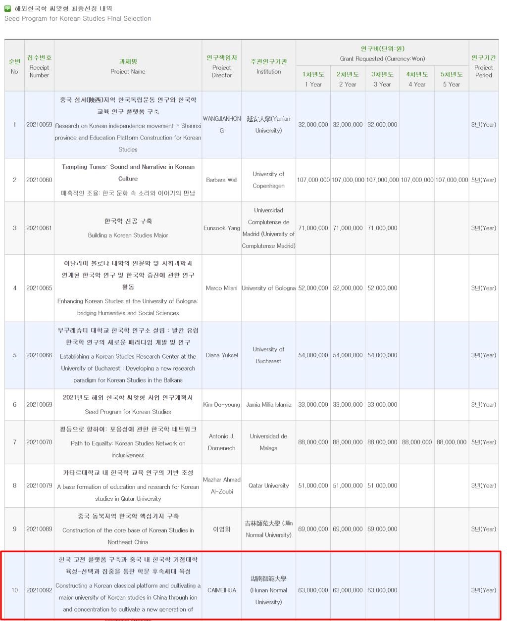 此次申请项目属于韩国国家级重点全球招标项目--国际韩国学孵化型项目,是韩国教育部为推动海外高校及研究机构的韩国学教育研究发展而面向全球发布的政府主导型研究项目。该项目于2009年正式启动,每年在全世界资助8-10项,中国地区每年有2项左右,在全球范围内的韩国学领域有着广泛而深刻的影响。