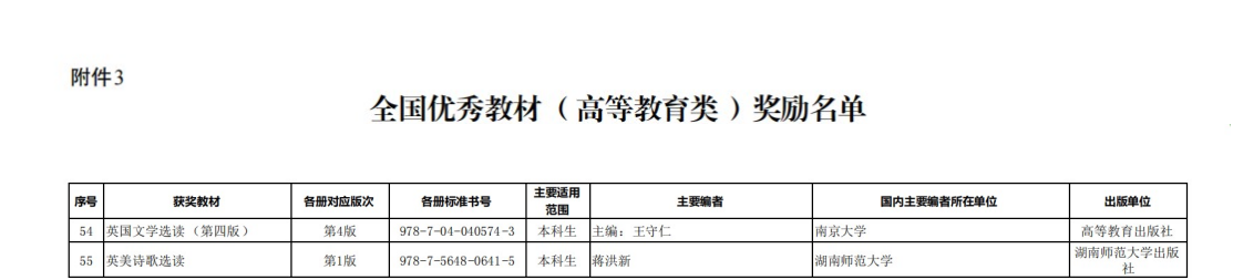 (通讯员 王耀光)10月12日,全国教材工作会议暨首届全国教材建设奖表彰会在北京举行,会上公布了《关于首届全国教材建设奖奖励的决定》(国教材〔2021〕6号)。校党委书记、欧洲科学院院士蒋洪新教授获首届全国教材建设先进个人,其主编的教材《英美诗歌选读》获全国优秀教材二等奖。