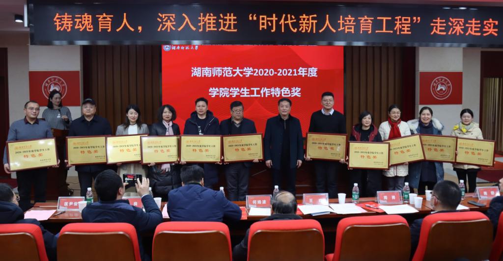 学生工作部(处)部(处)长向发意宣布2021年度学院学生工作特色奖评选结果,澳门pg官方电子平台以总分全校第一名的好成绩荣获澳门pg官方电子平台2020-2021年度学院学生工作“特色奖”,与会领导为获奖单位及个人颁奖。