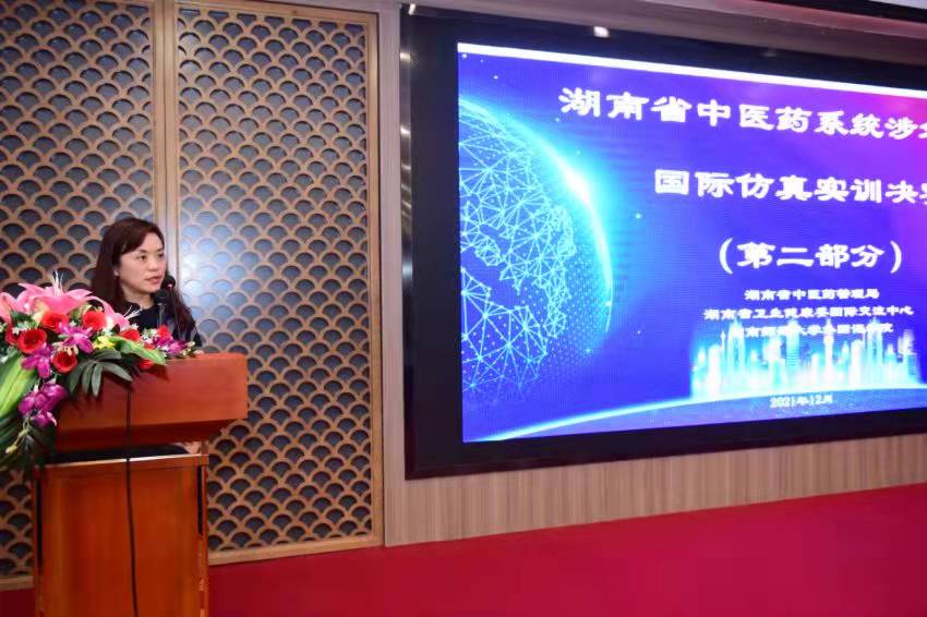 为助力实施“一带一路”建设和中医药“海外传播”行动,帮助中医药人员掌握应急和跨文化知识,扩大我省中医药对外交流合作与海外拓展医疗卫生事业的影响力,12月30日至31日,湖南省中医药系统涉外人才国际仿真实训竞赛在长沙举办。湖南省中医药管理局规划综合处副处长王颖异,湖南省中医药管理局规划综合处一级主任科员尹胜利,湖南省卫生健康委员会国际交流中心副主任兰征等带队并出席实训竞赛决赛。