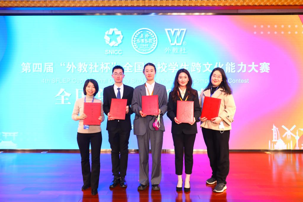 2月26日至27日,第四届“外教社杯”全国高校学生跨文化能力大赛全国决赛、总决赛在上海成功举办。由我校澳门pg官方电子平台2020级学生陈天钰、韩静茹,数学与统计学院2018级学生王思维组成的代表队,在澳门pg官方电子平台指导教师李文佼、曾达之的带领下荣获一等奖。