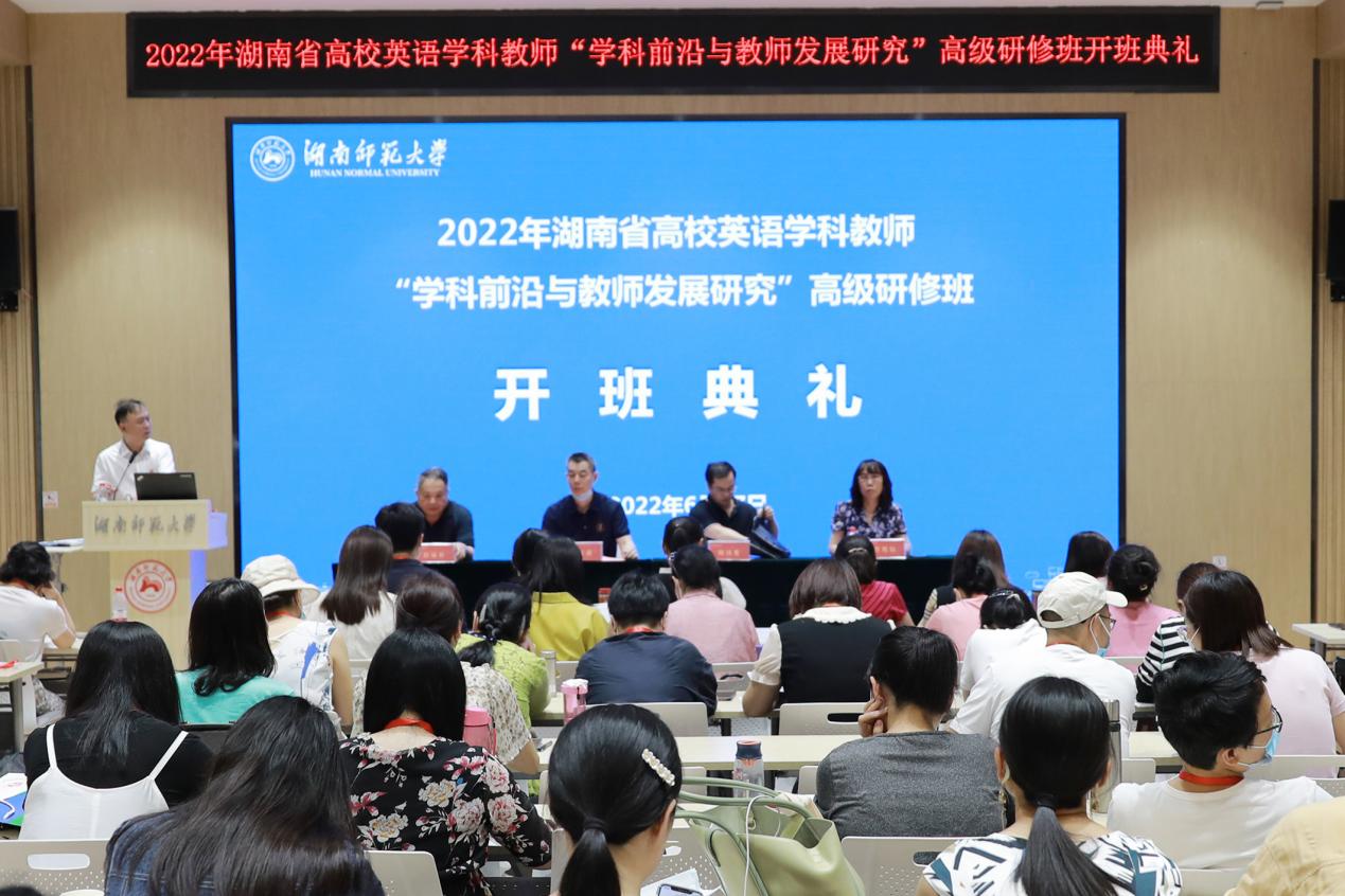 (供稿 考试培训中心)6月27日下午,2022年湖南省高校英语学科教师“学科前沿与教师发展研究”高级研修班在我校举行开班仪式。我校副校长蒋新苗出席仪式。仪式由澳门pg官方电子平台副院长司徒皓主持。