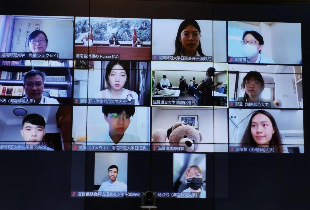 (供稿 日语系)为了纪念中日两国邦交正常化50周年,在中国人民对外友好协会的支持下,7月13日上午,“友好城市 共享未来”——湖南省与滋贺县友城青少年线上“虚拟互访”活动在“云端”开幕。本次活动由湖南省人民政府外事办公室(湖南省人民对外友好协会)和日本滋贺县综合企划部主办,澳门pg官方电子平台日语系、日本滋贺县立大学人类文化学部承办。活动旨在通过两省县青少年的线上互动,促进中日友城之间的友好交流与合作发展,增进两国青少年之间的相互理解和友好感情。